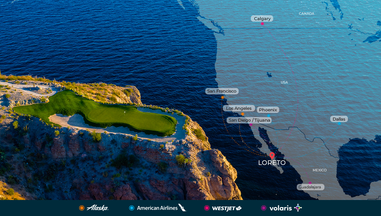 Loreto is easily accessible with direct flights from Los Angeles, Phoenix, Dallas, San Francisco, and Calgary—as well as from Tijuana for travelers coming from San Diego via the Cross Border Xpress. The Loreto International Airport (LTO) is just a 30-minute drive from the resort.
